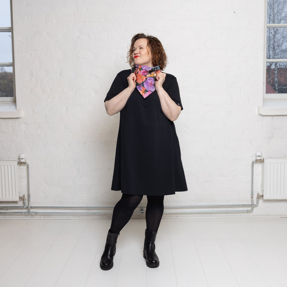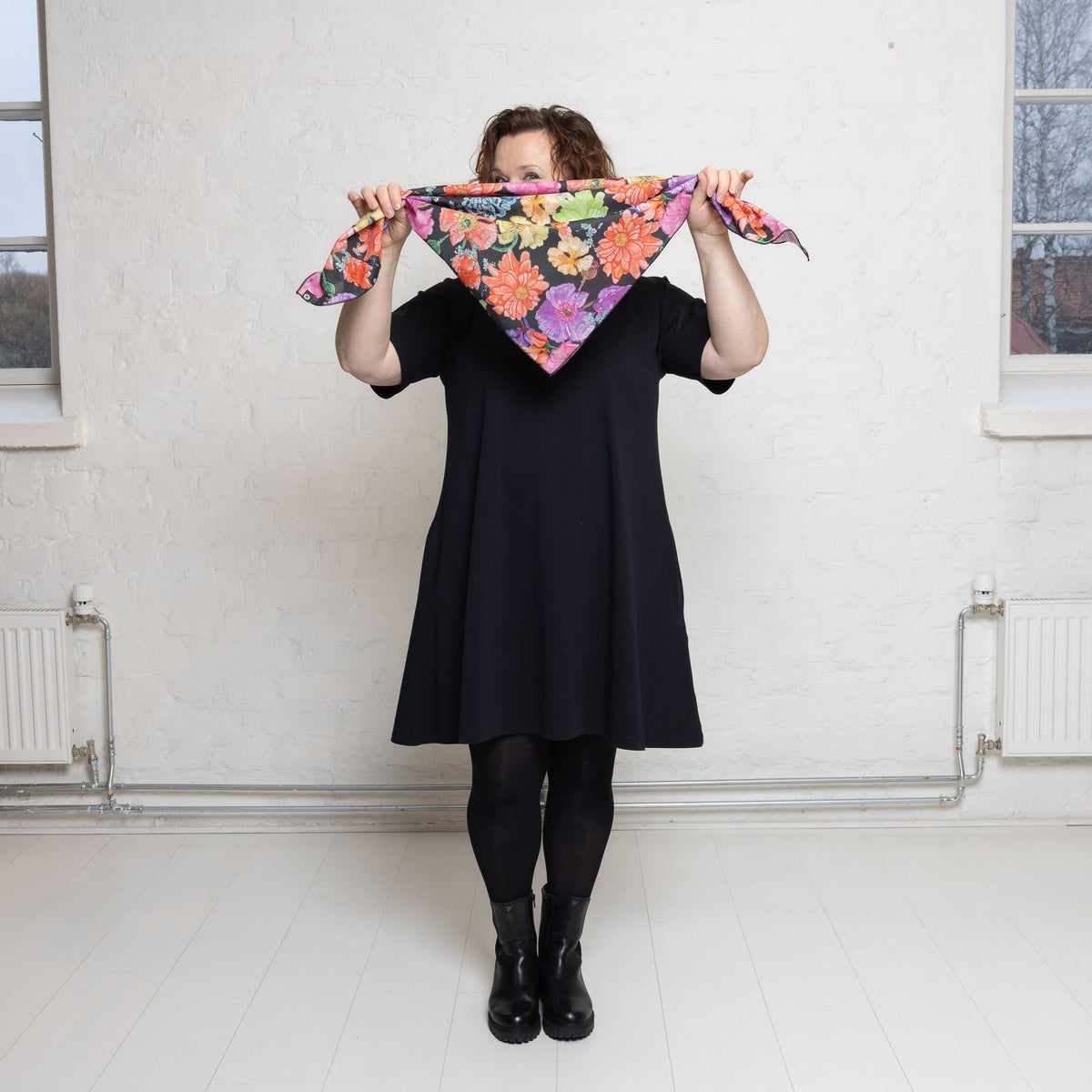 Materiaali: 100% puuvilla. Kangas on kudottu Pakistanissa, painettu sekä ommeltu huiviksi Suomessa.